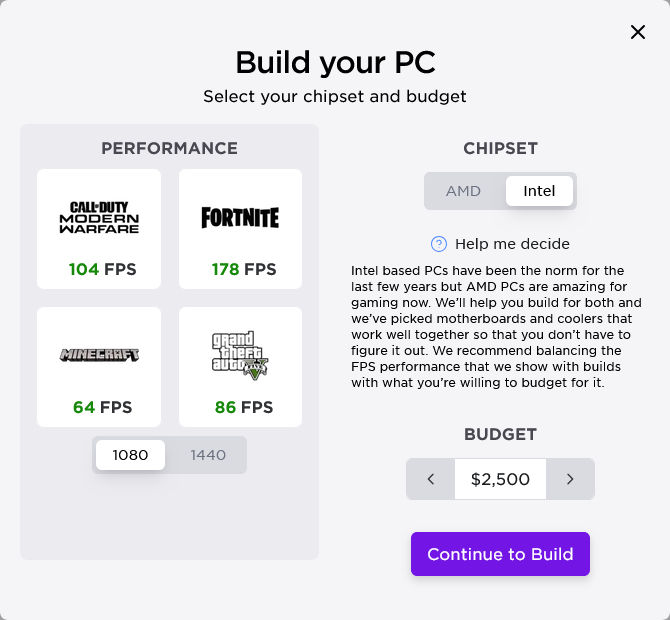 Later, at home, I take a look at some options. I have no idea what components work best with one another, and, luckily, I don't need to. Instead, NZXT explains the approach in a way that's user friendly and easily understood: Frames Per Second.