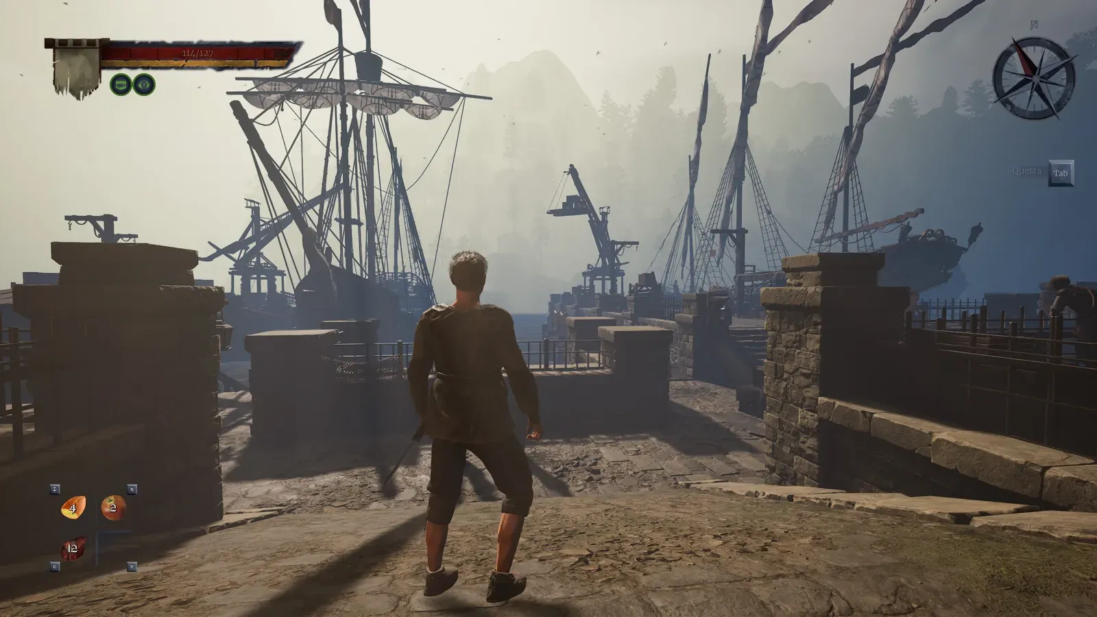 Of Ash and Steel isn't the first game to try this immersive exploration, and you can clearly see its influences in the first few hours of wandering through Greyshaft. That opening area from the beach to the first city is easily the most polished part of the experience, except that's really not the kind of compliment you'd think it is.