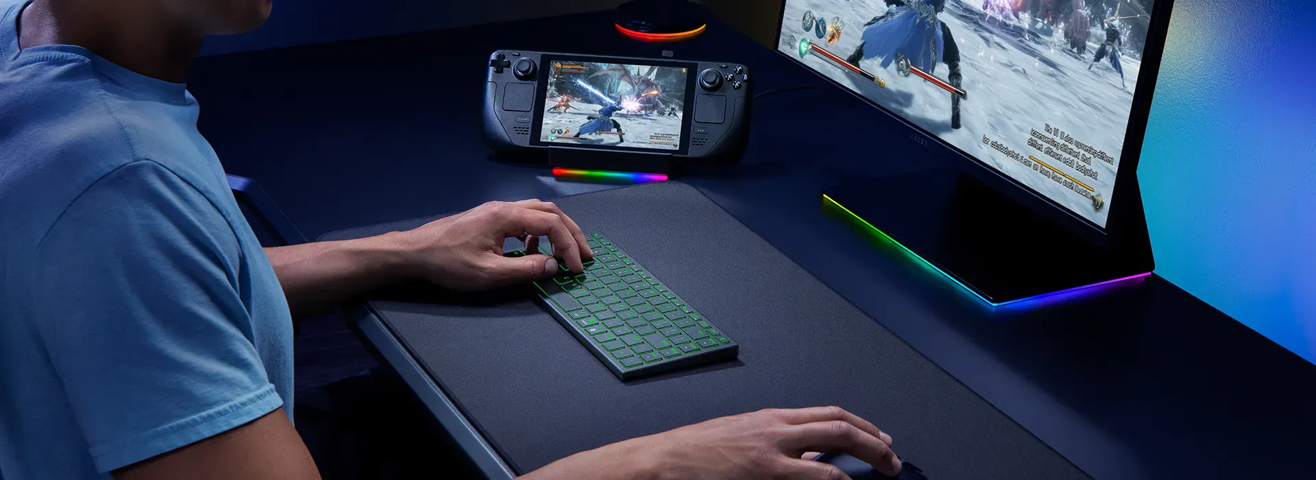 That's mainly because this is such a tiny device that it sat perfectly well in my lap, on my knees, and even balanced precariously on some arm rests in a particularly cramped hotel, where I had to type out a preview late one night. Regardless of the situation, the tactile keys (complete with the same scissor switches found on Razer laptops) proved reliable and comfortable even for extended sessions.