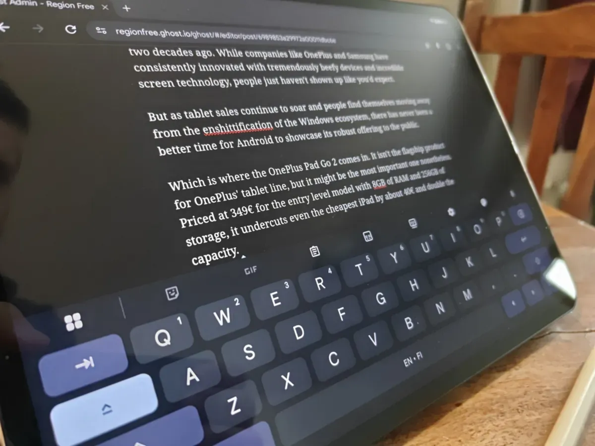 The other instance was with typing out a longer review (this one, in fact!), which I did entirely on the tablet after taking a moment to switch out my keyboard. This isn't particularly a fault with the OnePlus Pad Go 2, as the Razer Bluetooth keyboard has an American layout which feels unnatural for my European fingers. If and when OnePlus comes out with a new tablet that supports a native keyboard, I will replicate the test on a longer writing journey to see what happens.